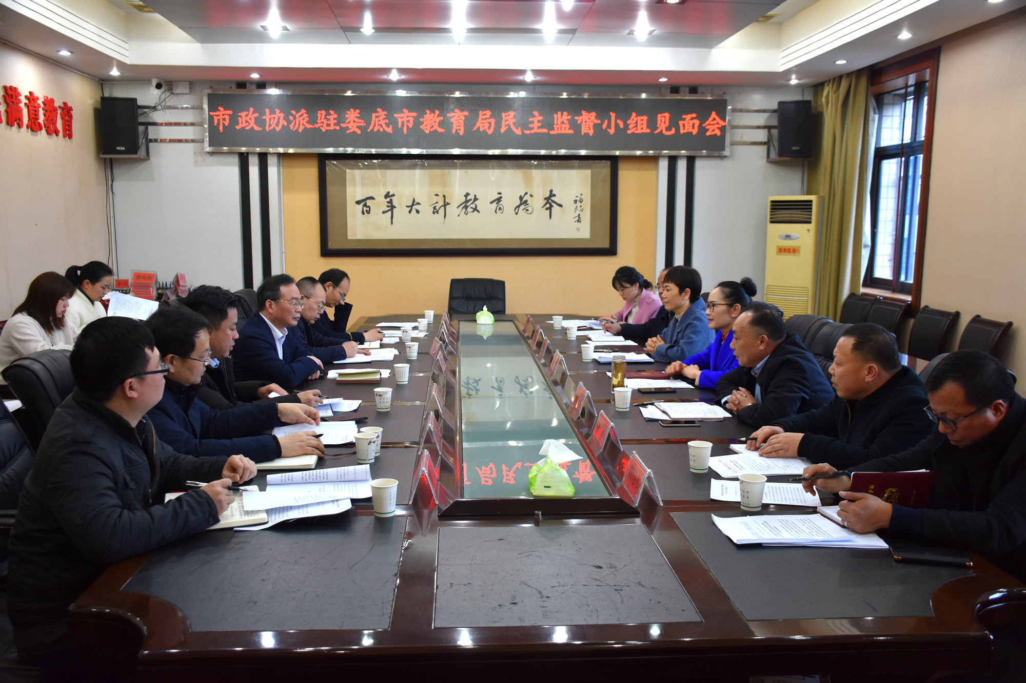 3月19日下午,市政協民盟界別派駐市教育局民主監督工作小組入駐見面座談會召開。會議由市政協文教衛體和文史委員會主任曾佳燦主持,市政協副主席、民盟婁底市委主委邵瑛出席會議并講話,民主監督小組成員王紅貴、陽偉書、陳波、凌會海,市教育局黨組書記、局長李耀文,黨組成員、副局長劉國良及相關科室負責人參加會議。