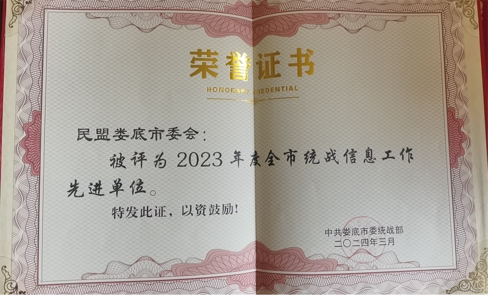 民盟婁底市委會被評為2023年度全市統戰信息工作先進單位。民盟婁底市委會提交的《實施鄉村文化振興系列工程,實現我市新山鄉巨變》被評為2023年度全市統戰理論政策研究創新成果二等獎。吳志奇被評為2023年度全市統戰信息工作先進個人。