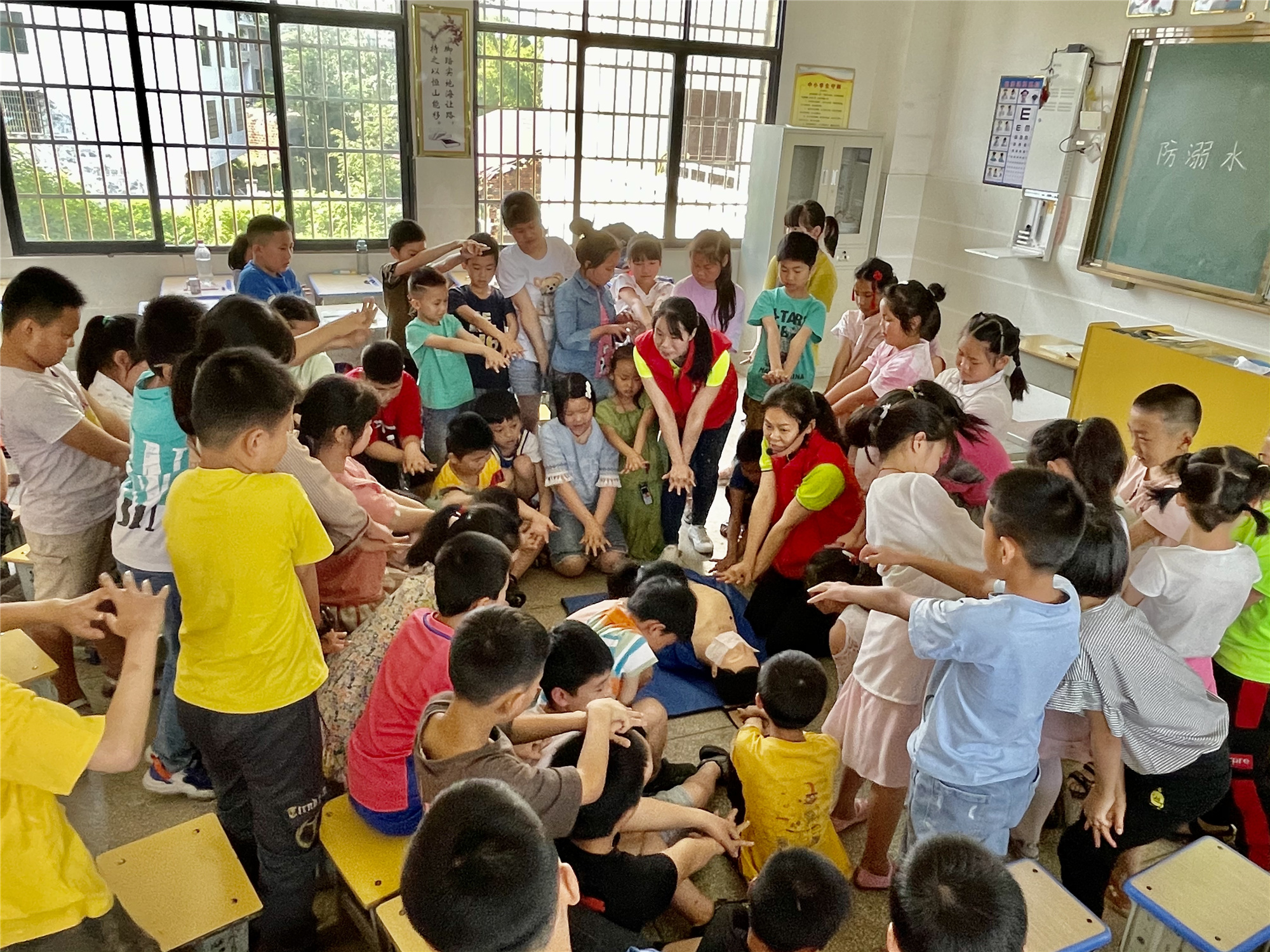 為了加強(qiáng)廣大少年兒童的安全意識與自我保護(hù)意識,懂得珍惜生命,遠(yuǎn)離危險,提高孩子的避險和自救能力,從根本上預(yù)防溺水事故和盲目施救擴(kuò)大事故的發(fā)生,6月7日-10日,婁底市中心醫(yī)院120急救站護(hù)士長、盟員王旭容及民盟婁底市中心醫(yī)院委員會部分盟員醫(yī)護(hù)人員赴杉山鎮(zhèn)10所中小學(xué)校、幼兒園開展防溺水安全教育,為2200多名師生進(jìn)行現(xiàn)場救護(hù)急救知識培訓(xùn)。