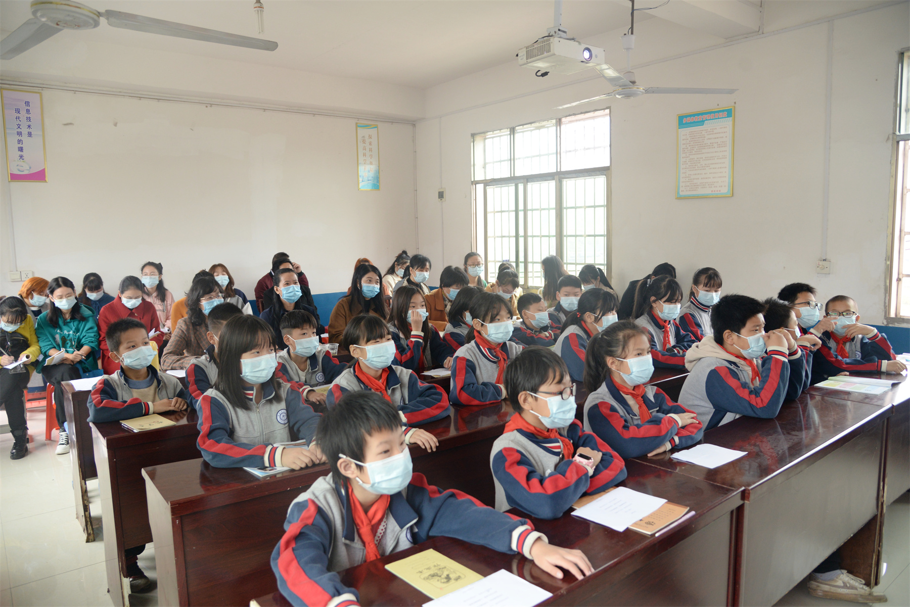 贈書儀式后,來自斗笠山鎮中心小學和惠民學校的三名老師分別為學生們講授了思想政治課《百年追夢》、音樂課《小拜年》、英語課"how old are you"。
