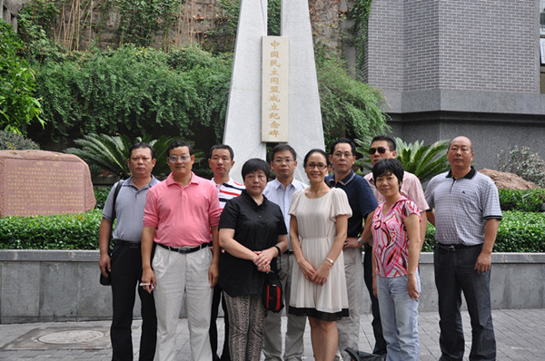 考察團成員在重慶市上清寺中國民主同盟紀念碑前合影留念