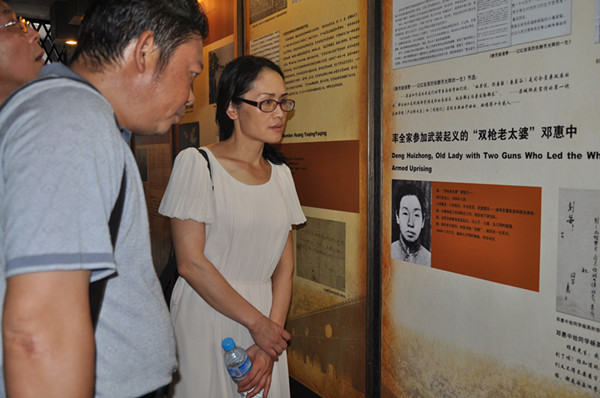 邵瑛(右)等在重慶市渣滓洞緬懷中共黨員、民盟盟員鄧惠中(雙槍老太婆原型)烈士