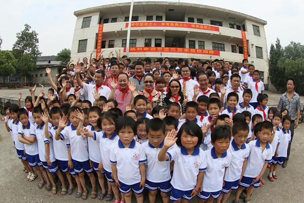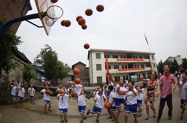 當日,邵瑛一行在惠民學校舉行了簡單的捐贈儀式,將凝聚著民盟婁底市委、婁底宇森汽貿、婁底市體育彩票管理中心濃濃愛心的價值3萬余元的校服、圖書及文體用品捐贈給了留守兒童,并與孩子們一起高唱《我們是共產主義接班人》。邵瑛、潘杰等還與孩子們一起玩了籃球投籃比賽。