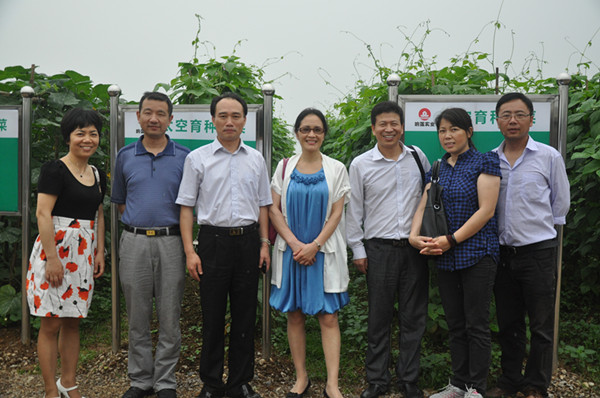 邵瑛(中)一行視察太空育種基地后合影留念