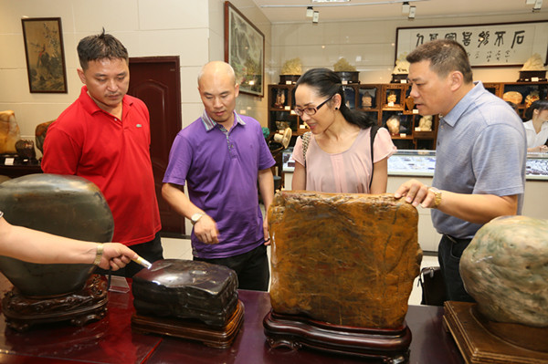 為陶冶盟員情操,提高盟員的欣賞水平,婁底市政協(xié)副主席、民盟婁底市委主委邵瑛率部分盟員參觀了盟員劉書增開設(shè)的盛石品藏館。