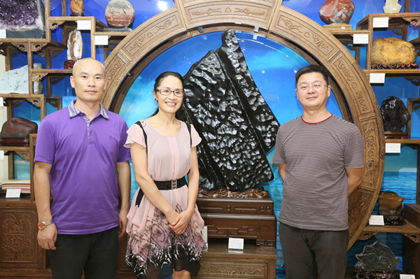 邵瑛(中)和奇石館負(fù)責(zé)人劉書增(左)、胡幼文(右)等合影