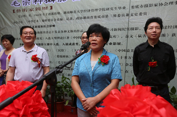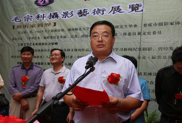 婁底市政協副主席譚懷連主持毛宗科攝影藝術展覽開幕式。