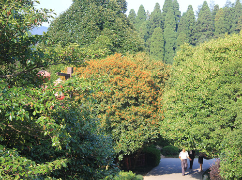 除了竹子,上山途中給我印象最深的是一路桂花飄香。大概是井岡山的人們最喜歡種植桂花,時值農歷八月,空氣中不時飄蕩桂花的清香,沁人心脾;越近茨坪,桂花清香越發醇厚,著實讓人心曠神怡!久居鋼筋水泥叢林中之吾輩,能在如此芬芳美景的氛圍中親近大自然,“實乃欲界之仙都”,人生之樂土!“久在樊籠里,復得返自然”,陶公言之,“于我心有戚戚”,愉悅雀躍之情油然而生!