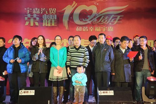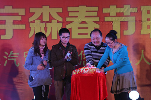 晚會在福特品牌表演的開場舞《宇森大聯歡》中拉開了帷幕,在全場高唱“祝你生日快樂”的歌聲中,邵瑛與潘杰共同為宇森集團10歲生日切分蛋糕,并祝福宇森集團事業興旺、宇森員工新年快樂,萬事如意!最后,晚會在全場合唱“走向復興”的潦亮歌聲中落下帷幕。整臺晚會熱鬧非凡。上演的十多個節目精彩無限,都是宇森集團員工利用業余時間自編自演的節目,充分展示了宇森員工較高的文化素質,高昂的精神面貌,飽滿的工作熱情;也向社會各界人士展現了宇森集團深厚的企業文化,描繪了宇森集團美好的未來。