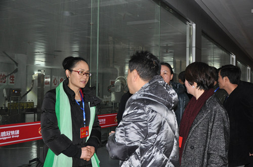 邵瑛一行參觀了鴻冠集團產業園的產品展示廳、油脂生產線、羽毛球及乒乓球中心,聽取了鴻冠集團董事長石江泳,鴻冠集團金點油脂公司董事長、婁底市政協常委、盟員楊建梅等關于企業發展情況的匯報。邵瑛說,鴻冠集團在短短的8年時間內,從無到有、從小到強,成為中南五省最大的食用油儲備庫,做成了湖南省最大的食用油生產基地,是了不起的成績;集團勇于開拓市場,創新經營,2012年底成功收購原華達機械總廠,在不到1年的時間里,到2013年11月,鴻冠集團就將原華達廠區改造成以綠色健康為主導、環境優美、功能齊全、設備先進的現代化環保旅游型產業園,不僅為政府排憂解難,還解決了就業、增加了稅收、美化了環境,一舉多得。邵瑛希望和鼓勵石江泳和楊建梅夫婦,要繼續發揚鴻冠集團“鴻鵠之志” 和“冠軍精神”,進一步加強企業管理,注重食品安全和質量,苦練內功,提高自主創新能力,力創名牌產品;集團當前也要注重加強資本運營,防范金融風險,勇攀事業高峰,做大做強做優企業,為社會創造更多的財富,為婁底的經濟建設貢獻應有的力量。