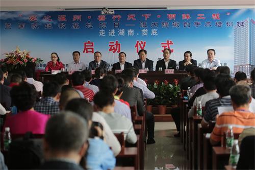 郭勇在講話中介紹,“明眸工程”由民盟中央倡導,在溫州慈善總會、溫州總商會和溫州人民等社會愛心機構和愛心人士參與支持下,由溫州醫科大學附屬眼視光醫院具體實施,旨在幫助中西部貧困地區眼病患者重見光明,提高中西部貧困地區醫療機構眼視光診療水平。婁底眼科醫院2012年被民盟中央定為“明眸工程”合作定點醫院,本次全國眼科內鏡微創手術培訓班在婁底開班也是“明眸工程”系列活動之一,歷時3天,邀請20多位全國著名眼科專家現場授課和手術示范。