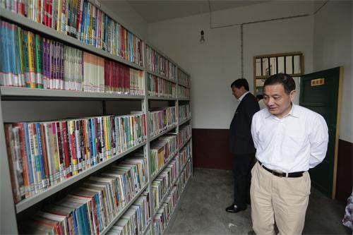 楊維剛、郭勇等參觀民盟婁底市委為惠民學校捐建的“民盟圖書室”