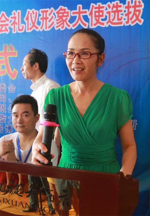新東方董事長(zhǎng)、盟員李佳在湖南省第12屆省運(yùn)會(huì)禮儀形象大使選拔賽啟動(dòng)儀式上致辭。