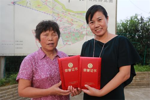 湖南省葡萄協會會長石雪暉(左)給李佳(右)頒發證書。