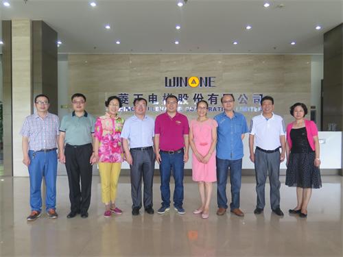 劉繼清(左4)、邵瑛(右4)一行與菱王電梯公司總經理(中)謝建合影