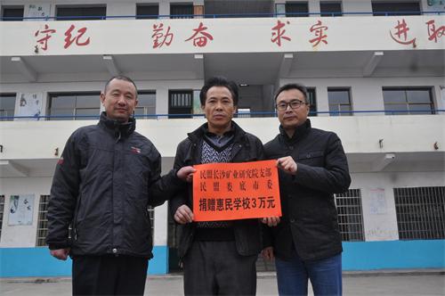 民盟婁底市委和民盟長沙礦冶研究院支部共同為惠民學校新建的青少年宮捐贈3萬元。中共長沙礦冶研究院副院長李茂林,民盟長沙礦冶研究院支部主委龔文勇等9人,對口支助9個貧困學生,給每個孩子捐助1000元學雜費和生活費。帶隊前來的長沙礦冶研究院黨群工作部部長闕鋒說,黨盟合作情系貧困學生的故事在長沙礦業研究院引起了良好的反響,今年又有3個同志主動加入了黨盟合作開展“燭光行動”。