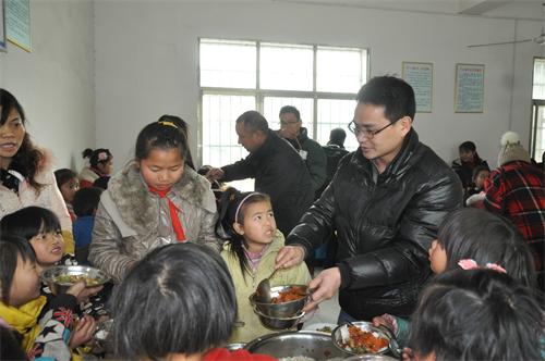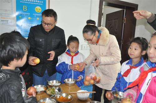 在新年即將到來之際,盟市委還給學校買了孩子們喜歡吃的豬肉、蘋果等食物,中午,邵瑛陪客人一行和全校師生在食堂共進午餐,惠民學校小小的食堂里充滿了濃濃的年味。餐間,賓主雙方愉快交談。邵瑛把民盟婁底市委送給孩子們的蘋果洗干凈與孩子們分享,希望孩子們在新的一年里平安健康快樂!