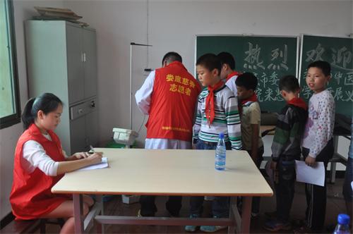 盟員志愿者認(rèn)真為孩子們做體檢