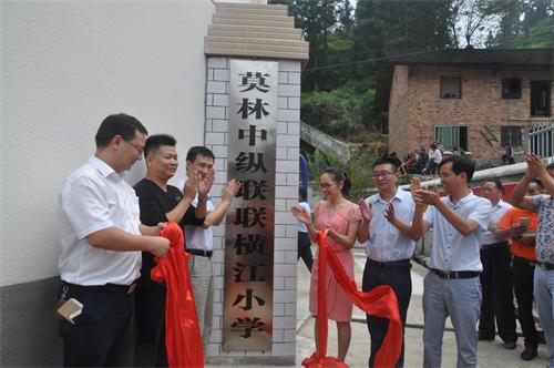 邵瑛(右3)等為莫林中縱聯聯橫江小學揭牌.