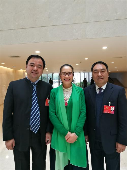 王雄(右1)與民盟界別委員邵瑛、向華(左1)親切交流