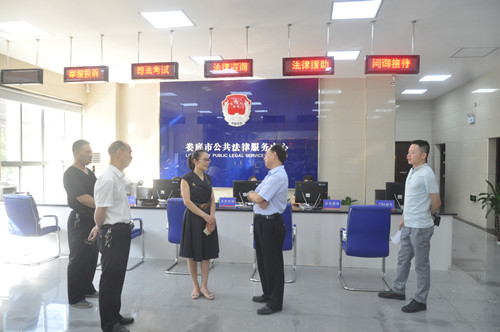 2017年7月18日,婁底市政協副主席、民盟婁底市委主委邵瑛一行,就民盟婁底市委集體提案辦理情況到婁底市司法局調研。民盟婁底市委專職副主委羊小慶,市司法局黨組書記、局長周小平,市司法局副局長譚波及市財政局、市農辦相關工作負責人陪同調研。
