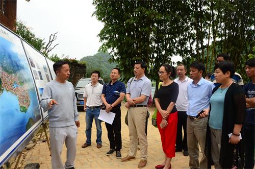 傅紹平(右1)、邵瑛(右3)聽取仙人洞村民俗村規劃建設情況匯報