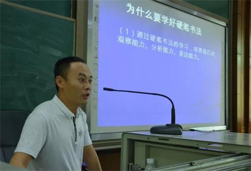 講座上,劉翼軍先講授了學好硬筆書法的重要性,分類展示了一批硬筆書法作品,闡述了“寫得好的字到底有多好”的問題。然后重點講授了學好硬筆書法的方法:要通過選帖、讀帖、臨帖來臨摹,從楷書到行書的循序漸進,從橫、豎、撇、捺、點、提、鉤、橫折與橫折鉤等的基本筆畫開始練寫,在書寫時,要注意多觀察、多臨摹,掌握字的間架結構;要做到持之以恒,不斷優化,要堅持練習,形成良好的書寫習慣,日積月累之后,練成一手好字,書寫漂亮人生。