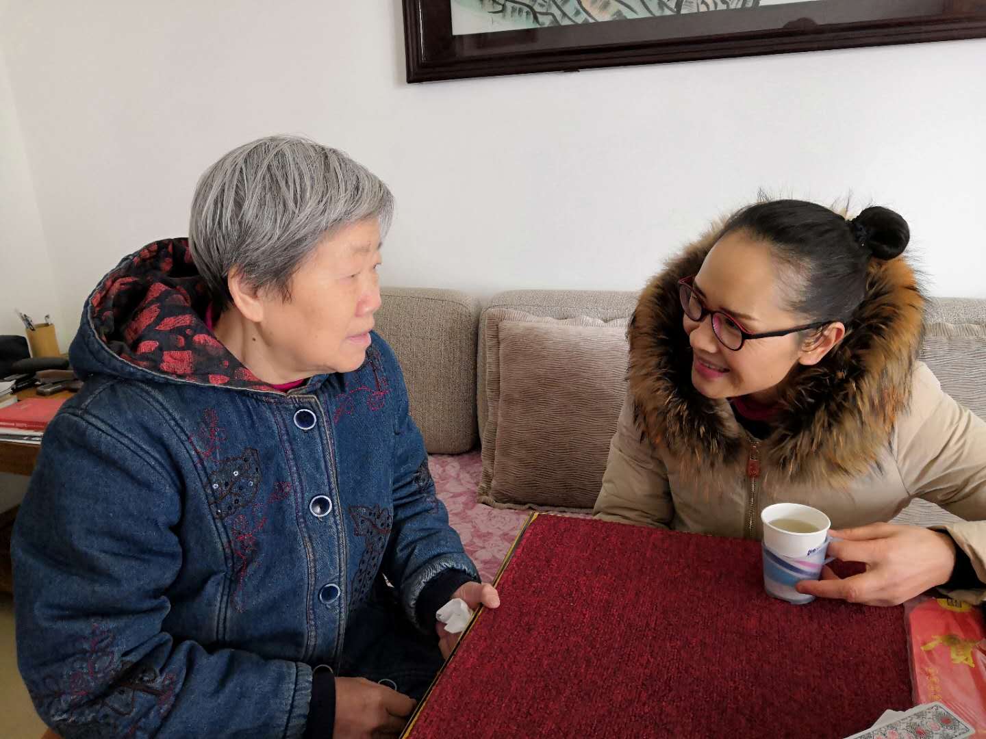 邵瑛(右)與鄒明玉(左)交談