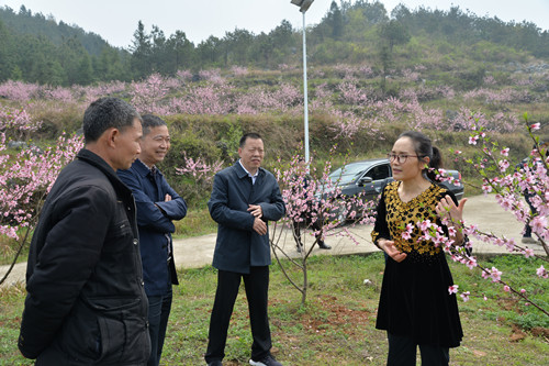 邵瑛(右1)指導(dǎo)毛坪村黃桃種植