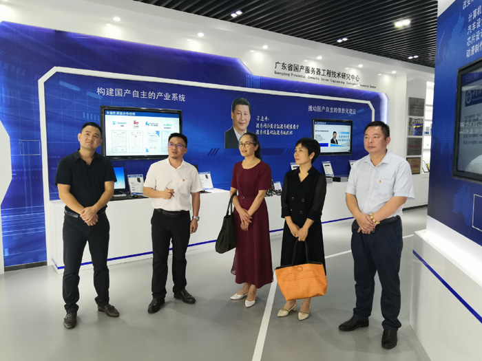 在廣州五舟科技股份有限公司,邵瑛一行參觀了該公司生產(chǎn)線,這是一家提供國產(chǎn)服務(wù)器軟硬件一體化產(chǎn)品的公司。在聽取了該公司總裁謝高輝等人的匯報后,邵瑛希望該公司不斷提升科研能力,為我國信息化安全做出貢獻。