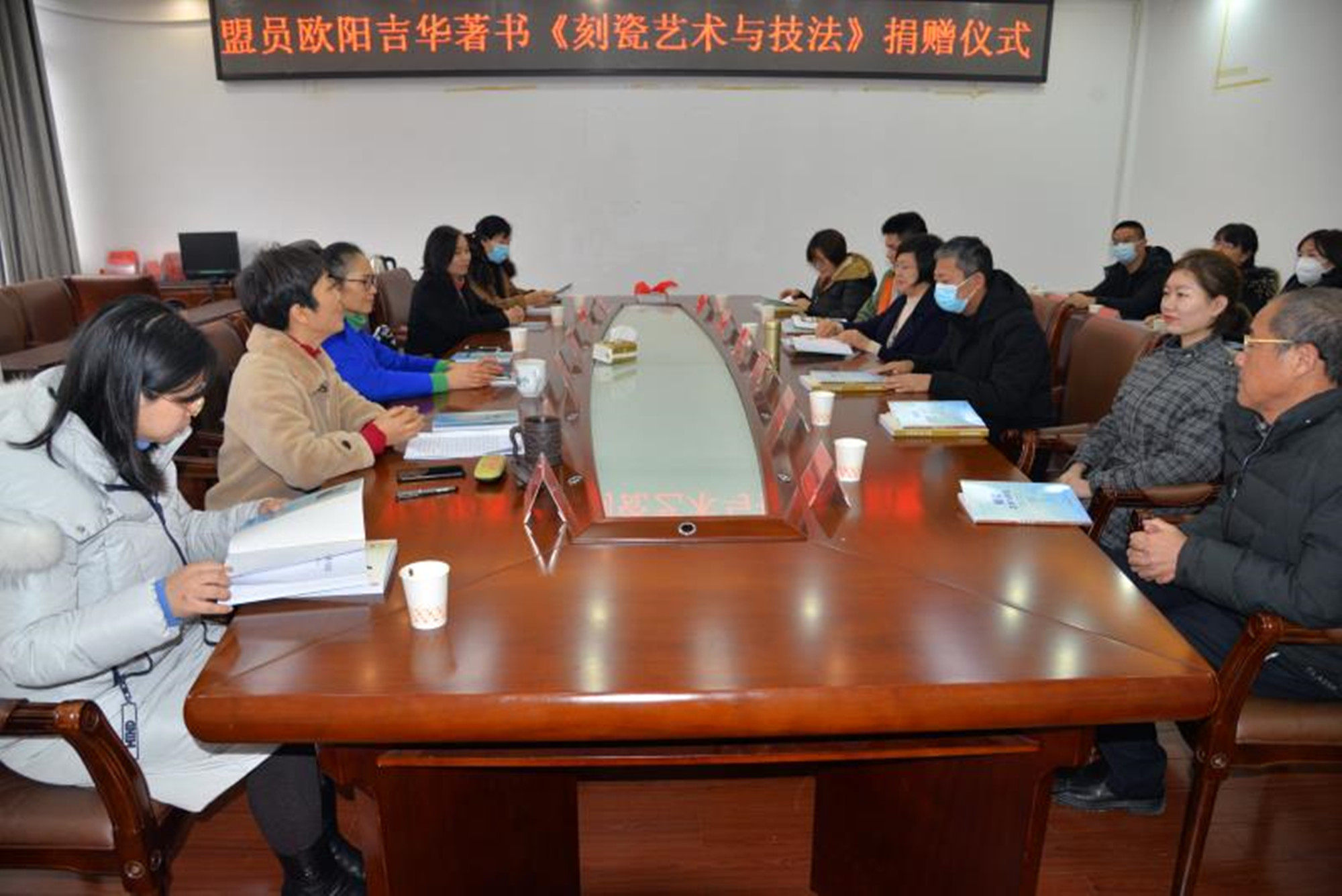 1月22日,婁底民盟盟員歐陽吉華向婁底市城區部分學校捐贈著書《刻瓷藝術與技法》儀式,在婁底市黨派會議室舉行,婁底市政協副主席、民盟婁底市委會主委邵瑛,出席儀式并講話,民盟婁底市委會專職副主委王紅貴主持捐贈儀式。