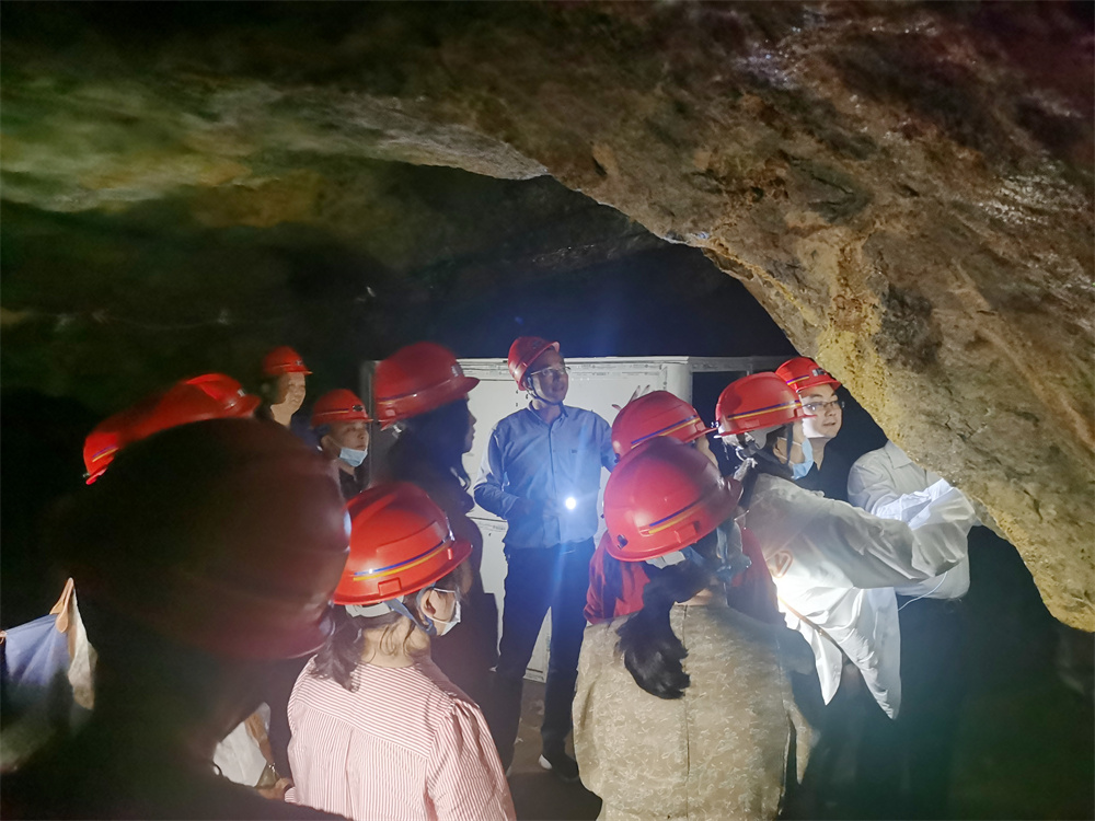 曾國良(左3)向調研組講解錫礦山特殊地質條件