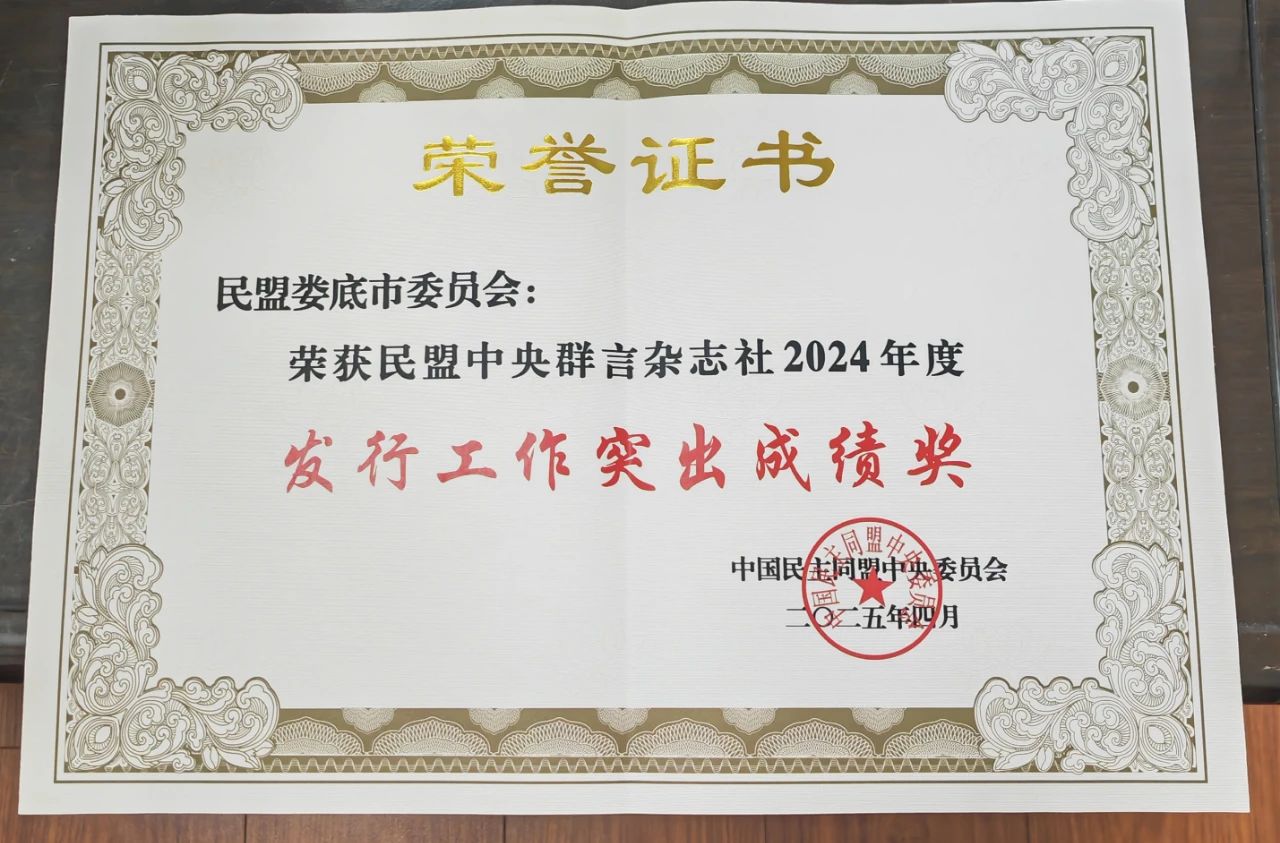 2025年4月,民盟中央對在2024年度《群言》發行工作中表現突出的組織進行表彰。民盟婁底市委會榮獲“民盟中央群言雜志社2024年度發行工作突出成績獎”,是全省唯一獲此殊榮的單位。