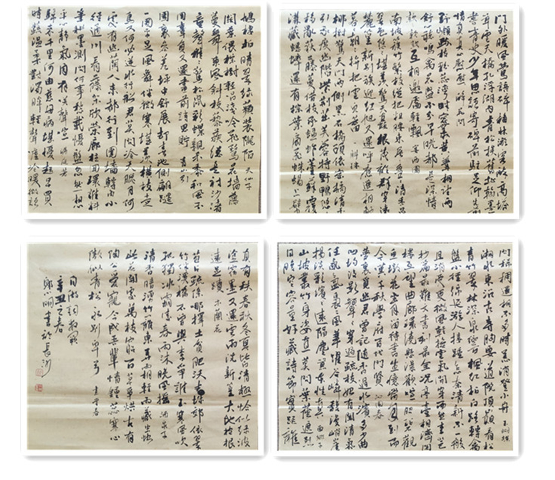 作品簡介:值此中國共產黨成立100周年之際,作者用小行書創作了四個小幅詩詞拼接成了一幅作品。詩詞內容有烈士碑前的感慨,有贊美梅、蘭、竹、菊的品德,也有賞春惜春的心情,表達了緬懷先輩、謳歌盛世、珍惜當下、不負韶華的情感。