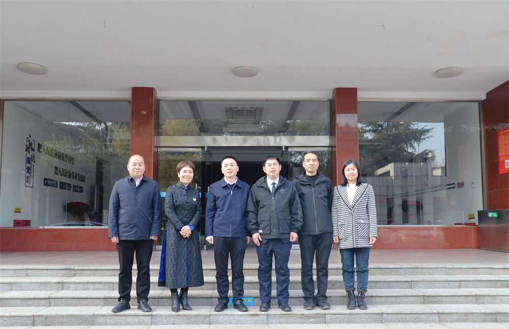 王文強(前排右1)一行走訪民盟婁底市委會機關,傅小松(前排中)陪同。