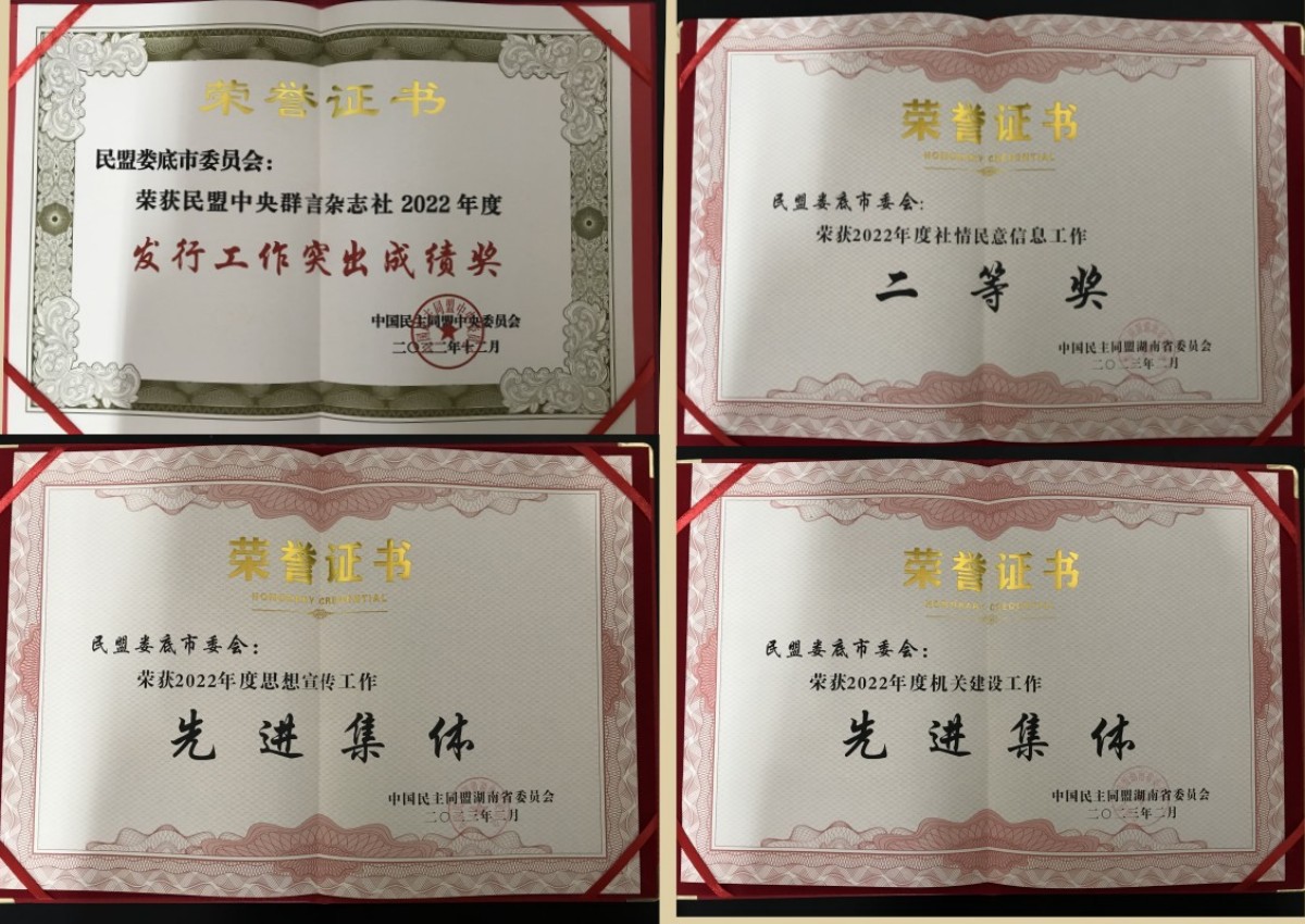 此外,民盟婁底市委會還榮獲“民盟中央群言雜志社2022年度發(fā)行工作突出成績獎”。