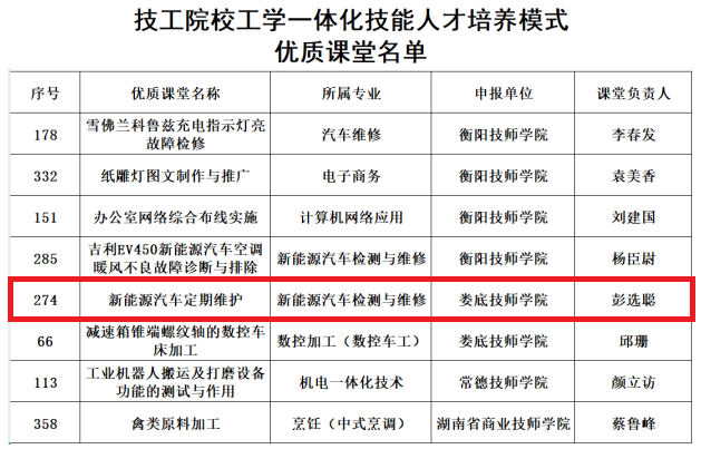 日前,人力資源社會保障部辦公廳公布技工院校工學一體化技能人才培養模式優質課堂名單,湖南省遴選推薦的8個作品脫穎而出,全部躋身國家級優質課堂行列。其中由婁底技師學院支部盟員彭選聰老師牽頭的教學團隊所打造的《新能源汽車定期維護》工學一體化課堂,成功入選人力資源和社會保障部工學一體化優質課堂。這一國家級榮譽,不僅是對學院教學改革成果的肯定,更是民盟成員立足本職、建功立業,積極服務技工教育發展的生動體現。