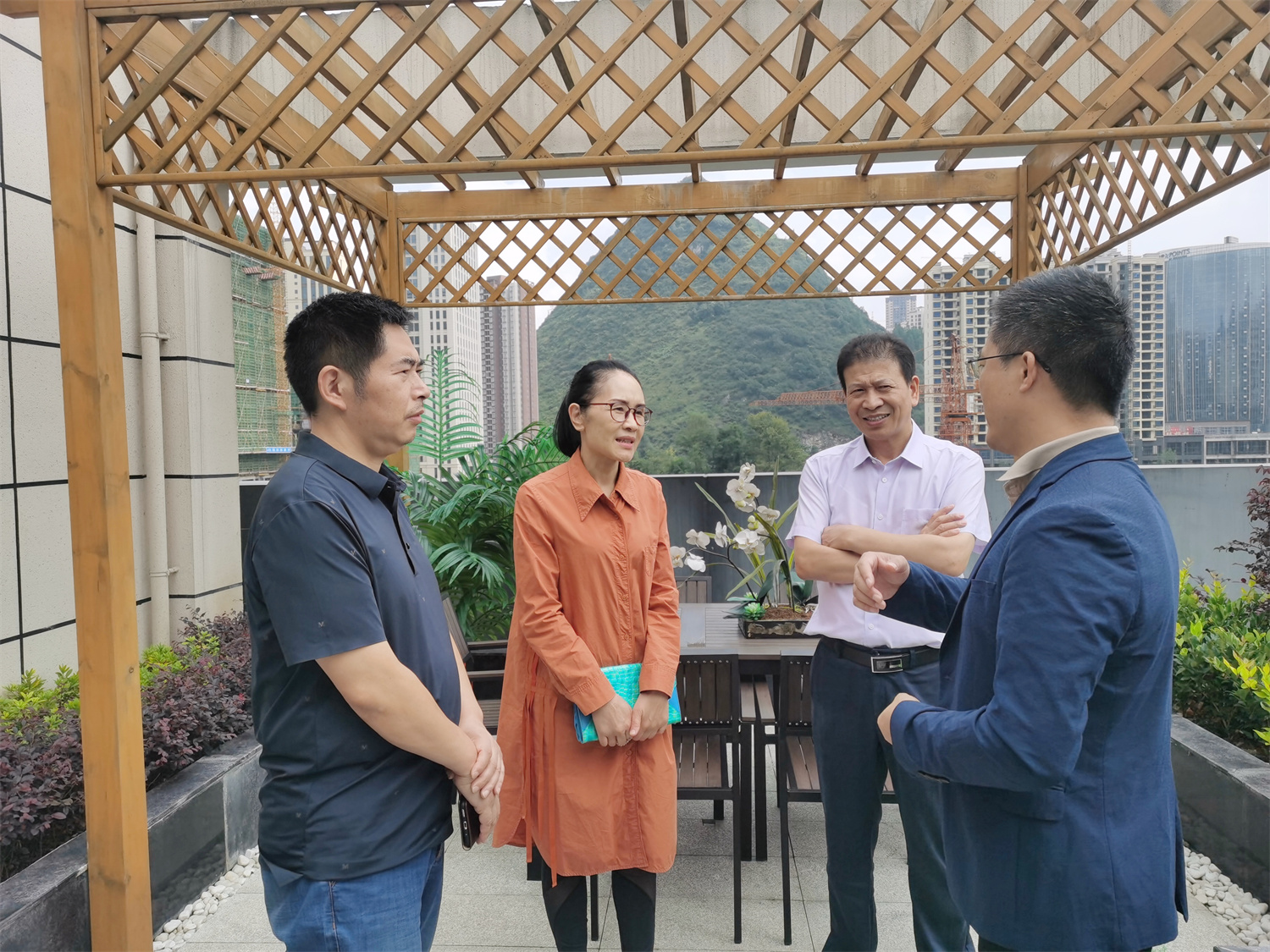 9月10日,邵瑛等(左2)拜訪婁商、六盤水銅鑼灣房地產公司董事長陳衛波(右1)